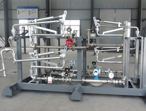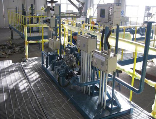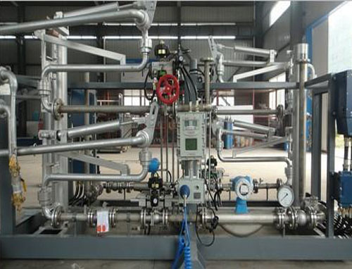 油品定量裝車橇裝組是指將每一個裝車鶴位內(nèi)的儀表和設(shè)備集成在一個專用的框架結(jié)構(gòu)內(nèi),儀表和設(shè)備包括裝車鶴管、流量計、防溢油靜電報警控制器、壓力變送器、裝車流量控制閥、緊急切斷閥,裝車泵、批量控制器等, 只預(yù)留工藝連接口和控制電源和通訊接口,這個整體集成部分稱為裝車橇。與傳統(tǒng)的裝車控制系統(tǒng)就地組裝比較,裝車橇可以節(jié)省現(xiàn)場設(shè)計和現(xiàn)場施工量,縮短項目工期,提高裝車控制系統(tǒng)的質(zhì)量。